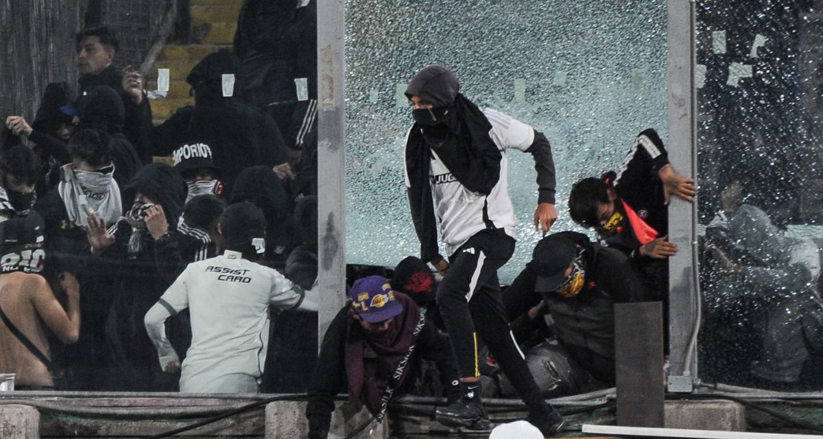 Durante el segundo tiempo del partido disputado este jueves, un grupo de encapuchados rompió las barreras acrílicas que separan la galería norte del Monumental con el terreno de juego, provocando la suspensión del encuentro. Mientras los futbolistas de Fortaleza escapaban hacia camarines, los jugadores albos intentaban calmar a los barristas que habían invadido la cancha.