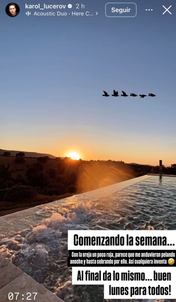 “Comenzando la semana, con la oreja un poco roja, parece que me anduvieron pelando anoche y hasta cobrando por ello. Así cualquiera inventa. Al final da lo mismo, buen lunes para todos”, escribió junto a una imagen matutina.