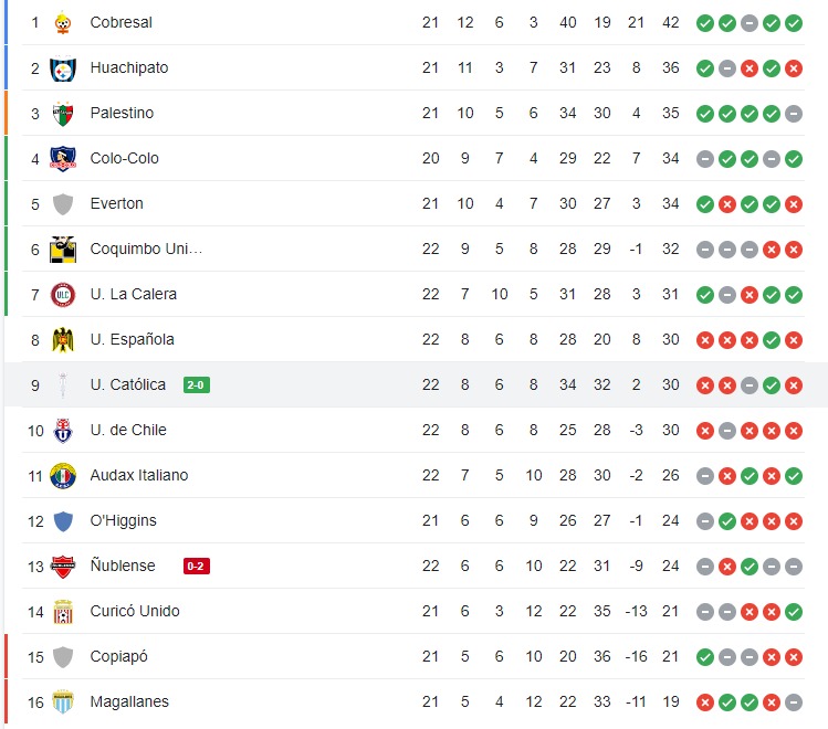 Este triunfo catapulta a la UC, dirigida por Nicolás Nùñez, al noveno lugar en la tabla, acumulando 30 puntos. Por otro lado, los “Diablos Rojos” de Ñublense se estancan en las 24 unidades y descienden al puesto 13.