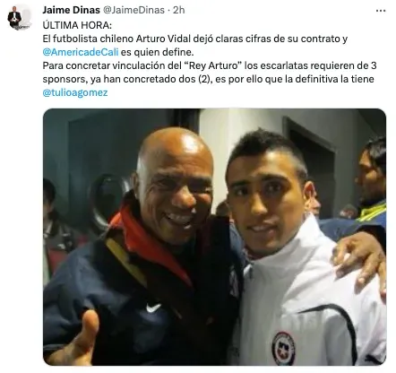 Por ello, el conjunto de Cali busca un respaldo financiero considerable para acoger a Vidal como un verdadero monarca. Jaime Dinas señaló que ya comenzaron negociaciones significativas para cerrar su contratación cuanto antes.