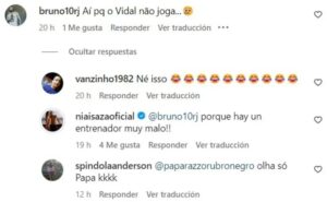 Un aficionado consultó la cuenta Instagram de la modelo para preguntar por qué Arturo Vidal no ve acción en el Mengao. A lo que la colombiana respondió atacando al Pelado. “¡Porque hay un entrenador muy malo!”.