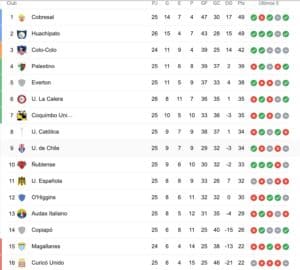 En contraparte, Unión La Calera ocupa el sexto lugar con 35 puntos, corriendo el riesgo de perder su espacio en la Copa Sudamericana a manos de Coquimbo Unido, Ñublense y, si vence a O’Higgins, Universidad Católica.