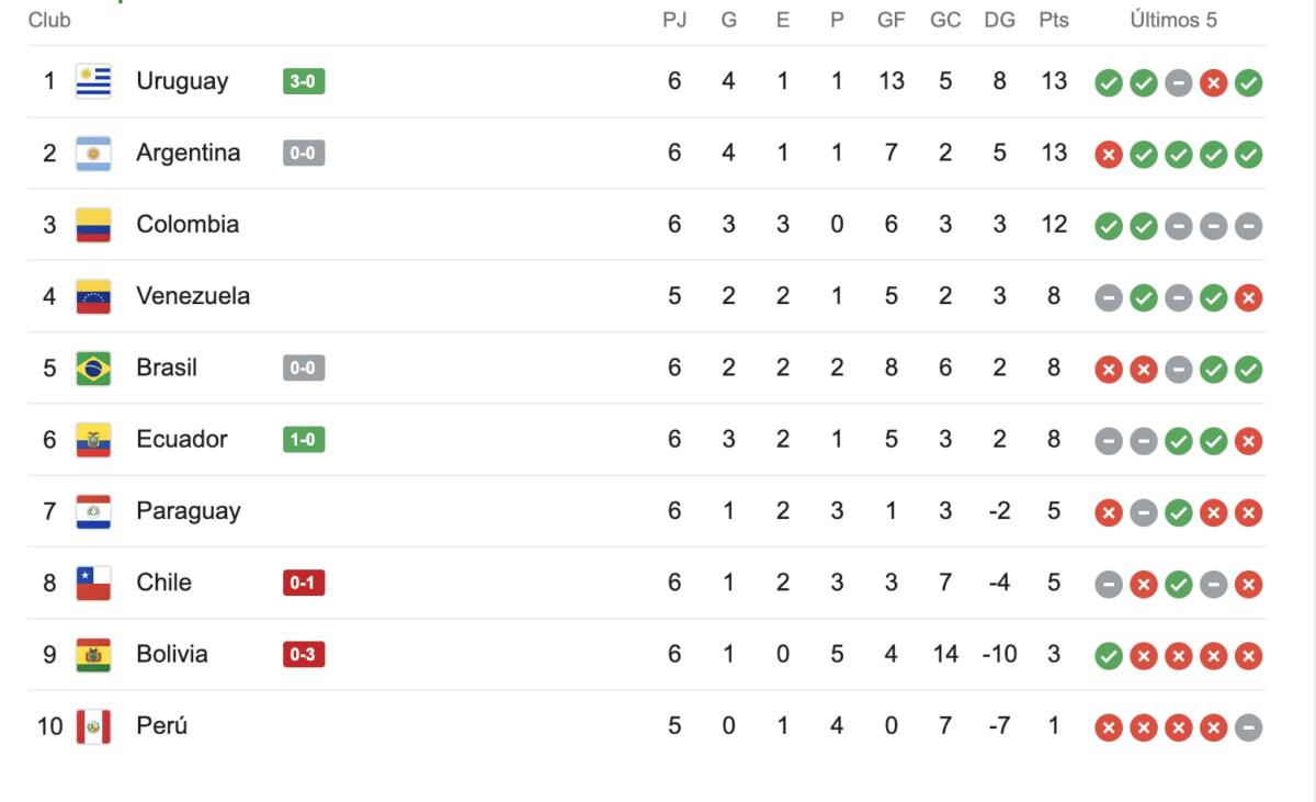 Así quedó la tabla de posiciones tras la derrota de la Roja ante Ecuador