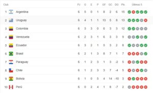 Actualización de la Clasificación en las Eliminatorias Sudamericanas