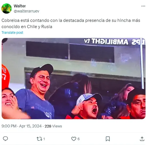 El fervoroso seguidor, reconocido por una fotografía viral que lo mostraba junto a una amiga durante la Copa Confederaciones de 2017, se hizo notar en la tribuna preferencial del Monumental. Las cámaras de TNT Sports lo captaron alucinando con el gol de su equipo, irradiando felicidad entre los pocos seguidores de Cobreloa presentes en el estadio de Macul.