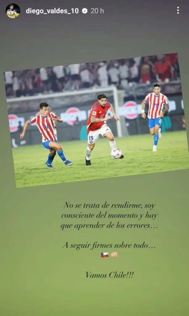 A poco más de 24 horas de la esperada confrontación entre Chile y Ecuador por las Eliminatorias Sudamericanas, Valdés decidió romper el silencio y dirigirse a sus seguidores a través de las redes sociales. En una publicación cargada de determinación, expresó: “No se trata de rendirme, soy consciente del momento y aprender de los errores.. a seguir firmes, sobre todo… Vamos Chile!!!”, mostrando su disposición para seguir adelante a pesar de las críticas.