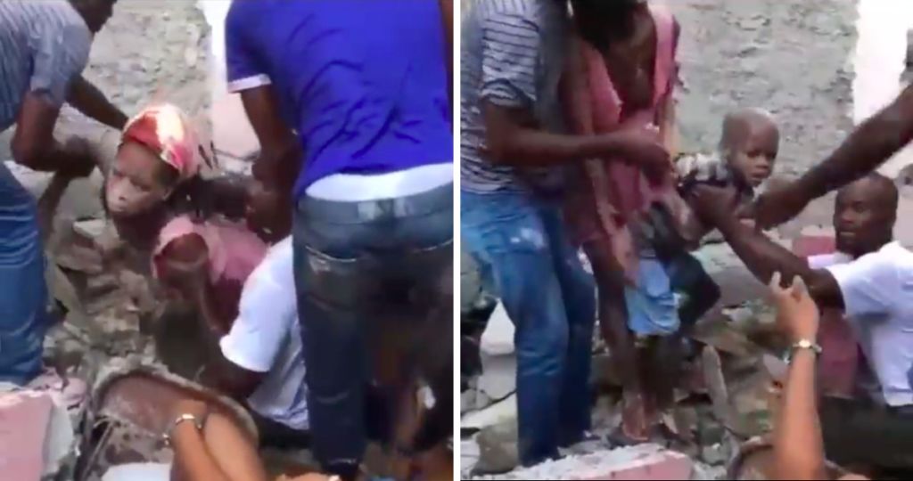 Luego de los derrumbes provocados por el terremoto en Haití de 7,2 grados, quedó registrado en un video el impactante rescate de una mujer y un niño.