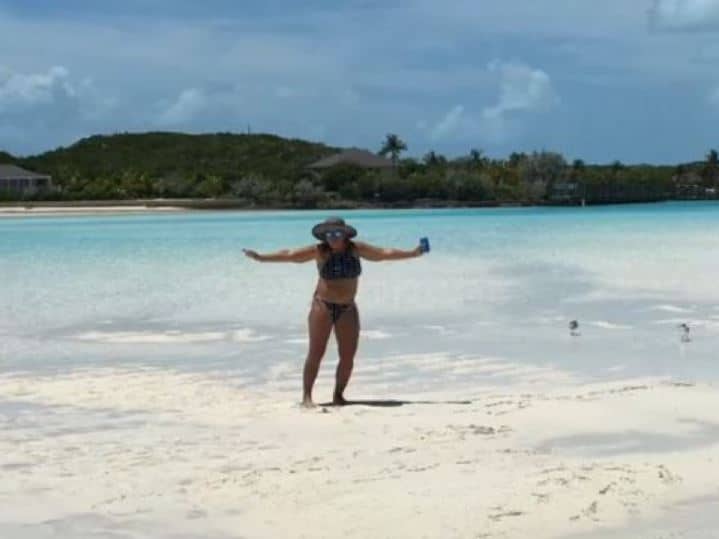 La foto refleja su autenticidad y la forma en que se permite disfrutar de momentos sin preocuparse por la apariencia.