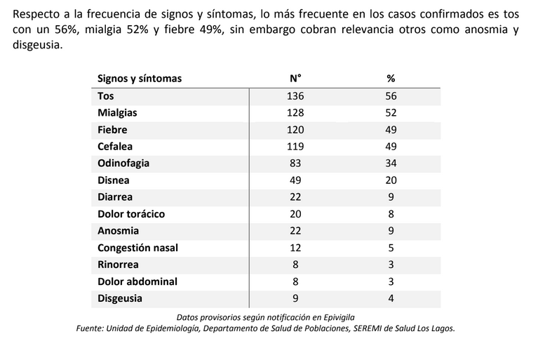 Por su parte la Seremi de salud Scarlet Moltt, entrego un informe donde detalla los síntomas que más han presentado las personas contagiadas en la Región de los Lagos.