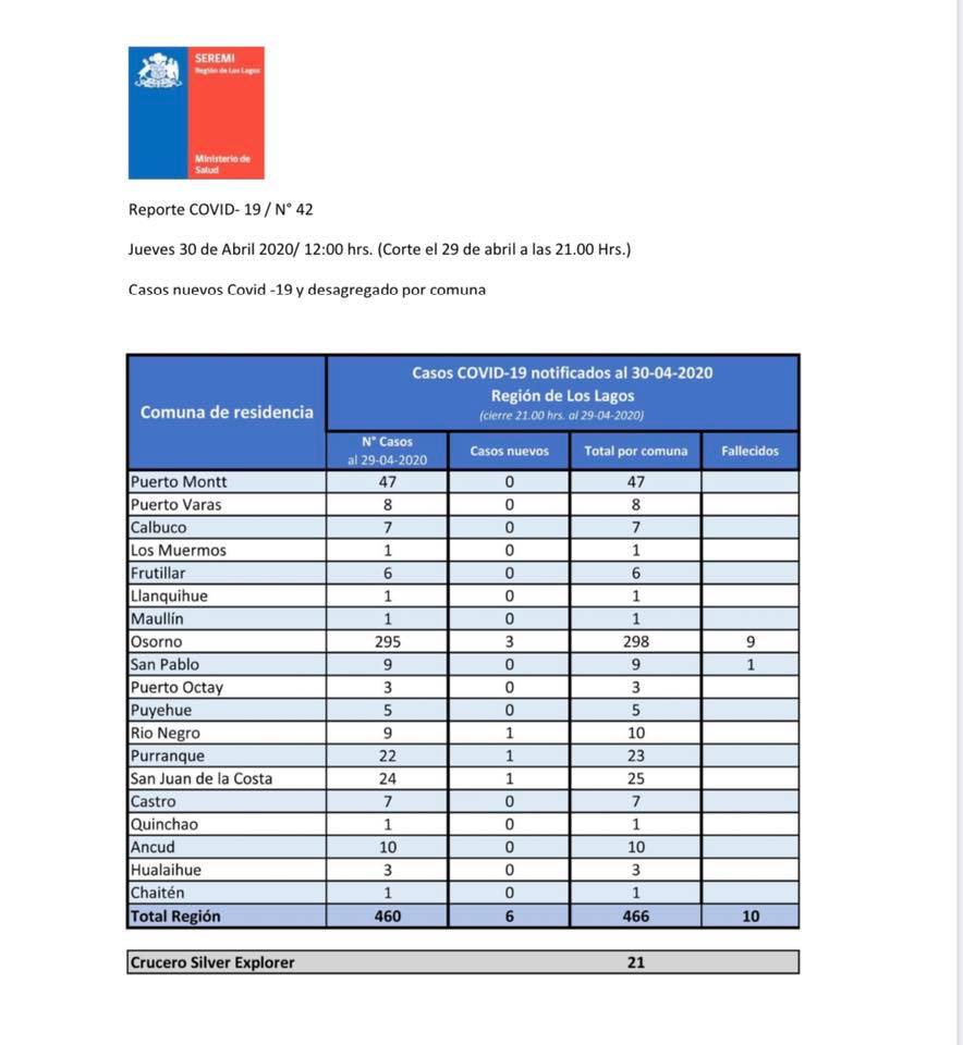 La Provincia de Osorno sigue registrando nuevos casos de Covid-19, misma situación para la Provincia de Chiloé, donde Ancud registró 3 casos.