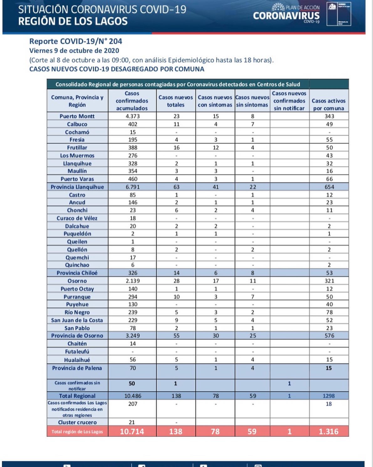 Puerto Montt y Osorno lidera: Región de los Lagos registró 138 casos nuevos de Covid-19 Central Noticia Actualizado: Octubre 9, 2020 Whatsapp Facebook Twitter Linkedin Copy link