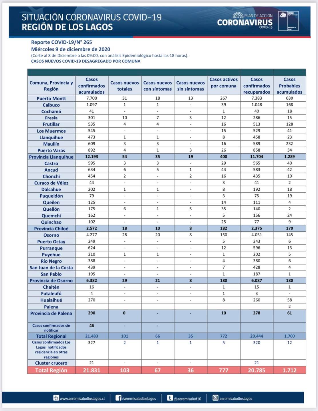 Puerto Montt, Osorno y Chiloe siguen a la baja en casos nuevos de Covid-19.
