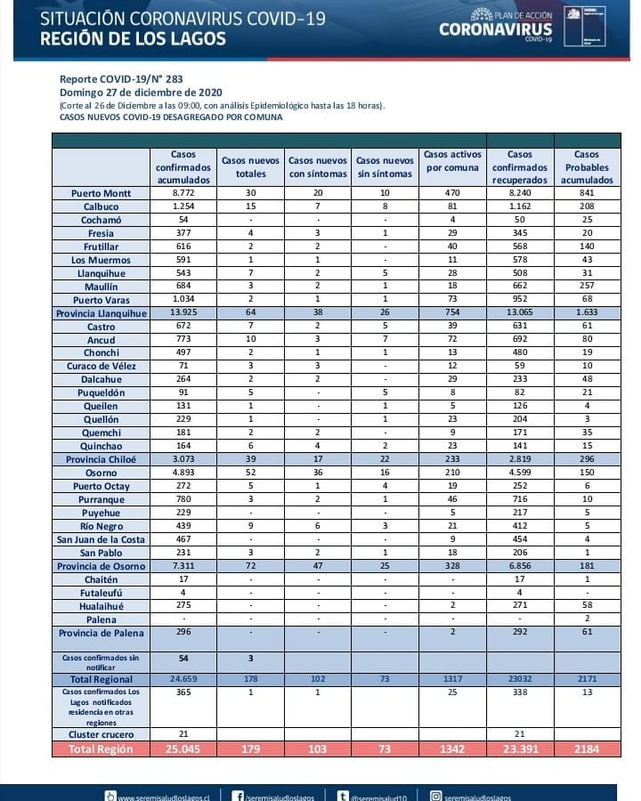 Osorno registra importante alza: 179 nuevos casos de Covid-19 en la Región de los Lagos