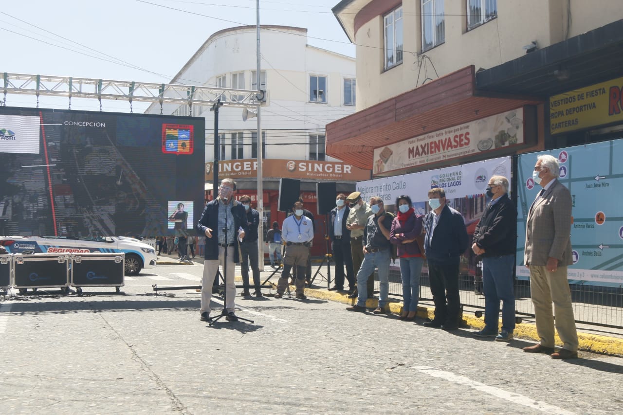 Puerto Montt, enero 7 de 2021.- Con la presencia de autoridades comunales y regionales en terreno se dio inicio a las obras de Mejoramiento de calle Antonio Varas que con una inversión de más de 8 mil millones de pesos pretende solucionar históricos problemas de infraestructura y revitalizar el centro de la comuna.
