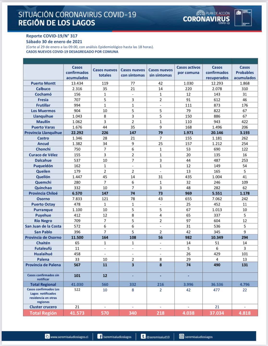 Los Lagos siguen con cifras altas: Hoy se registraron 570 casos nuevos de Covid-19 Los números de contagios diarios siguen siendo malo para nuestra región. Central Noticia Actualizado: Enero 30, 2021 Whatsapp Facebook Twitter Linkedin Copy link