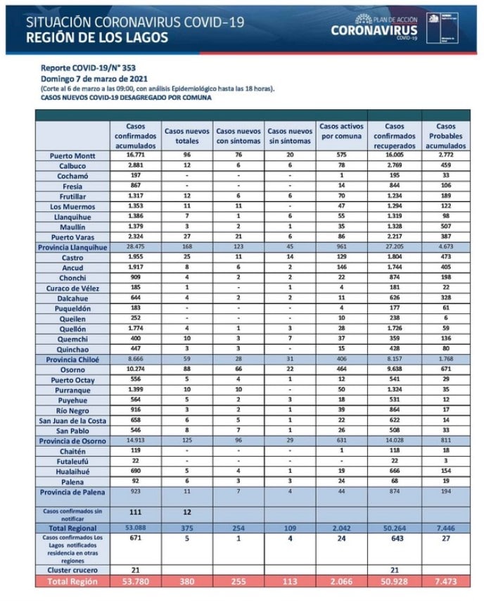 Puerto Montt se acerca a los 600 casos activos: Región de los Lagos registro 380 casos nuevos de Covid-19