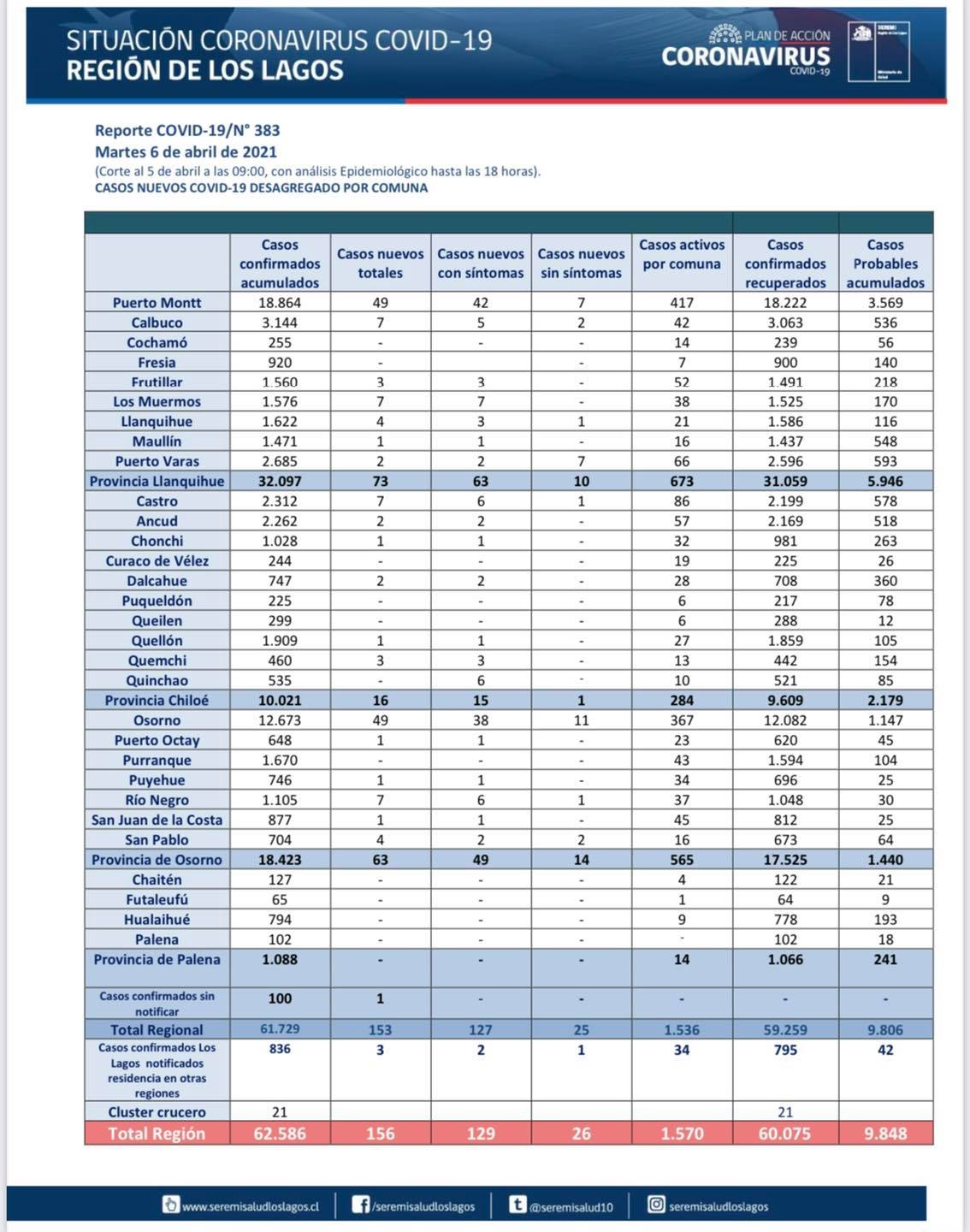 A la baja: Región de los Lagos registro 156 casos nuevos de Covid-19 La Región de los Lagos sigue con cifras baja de Covid-19. Central Noticia Actualizado: Abril 6, 2021 Whatsapp Facebook Twitter Linkedin Copy link