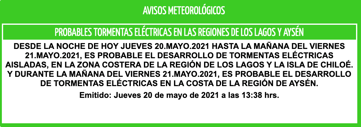 Meteorología de Chile anuncio la posibilidad de tormenta eléctrica para la Región de los Lagos en la tarde noche de este día jueves.