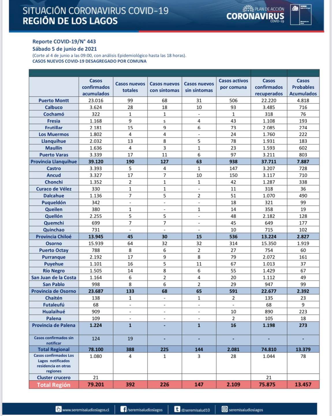 Puerto Montt vuelve a registrar alza: 392 casos nuevos de Covid-19 Nueva alza registro la Región de los Lagos, Puerto Montt sube en caso activos. Central Noticia Actualizado: Junio 5, 2021 Whatsapp Facebook Twitter Linkedin Copy link