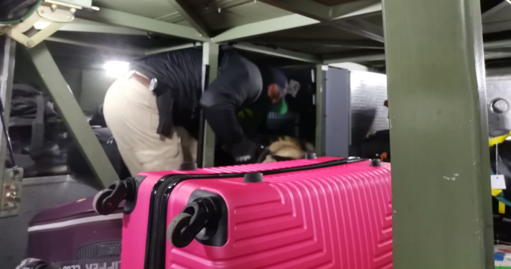 Detalló que en el lugar se revisaron cinco bolsos los cuales dieron positivo a la fiscalización del equipo especializado.