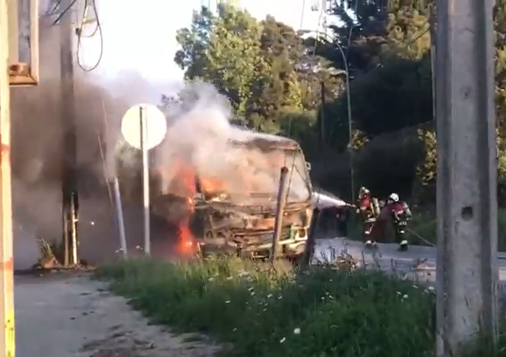 Un microbús de la locomoción colectiva se prendió en llamas mientras circulaba por la Ruta 226 a la altura del acceso al sector Puerta Sur, en la ciudad de Puerto Montt.