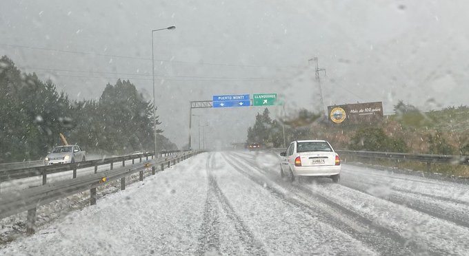?⚠️ AHORA #Ruta5: precipitaciones de agua nieve y granizo en el tramo entre #Llanquihue y #PuertoVaras. Máxima precaución conductores. pic.twitter.com/6YaOatRU48