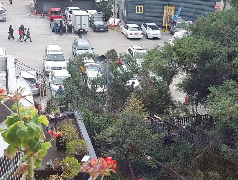 Uno de estos hechos ocurrió pasadas las 17:30 horas, en un estacionamiento ubicado en avenida Juan Mackenna, frente al registro civil de la ciudad, parte de un árbol cayó sobre un vehículo que se encontraba estacionado. Aún no se han reportado la gravedad de los daños.
