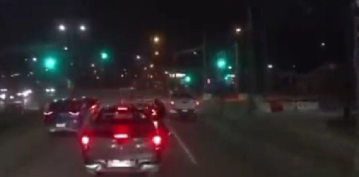 El hecho se registró en la Avenida Presidente Ibáñez con la calle Ejército en Puerto Montt, y fue captado por la cámara de un automóvil que se encontraba detrás del auto afectado.