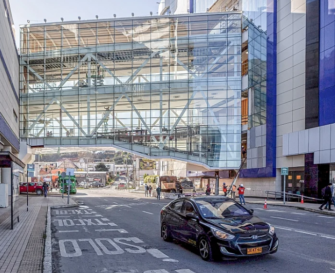 La estructura ,que une el antiguo edificio del mall Paseo Costanera con su ampliación, posee tres niveles, de 28 metros de largo por 10 de ancho e implicó una inversión de un millón de dólares, publica diario El Llanquihue.
