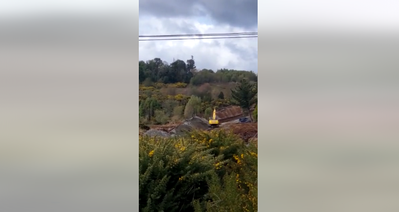 En un video captado por el mismo Hinostroza indicó mientras las imágenes muestran a una máquina retroexcavadora realizando movimientos de terreno