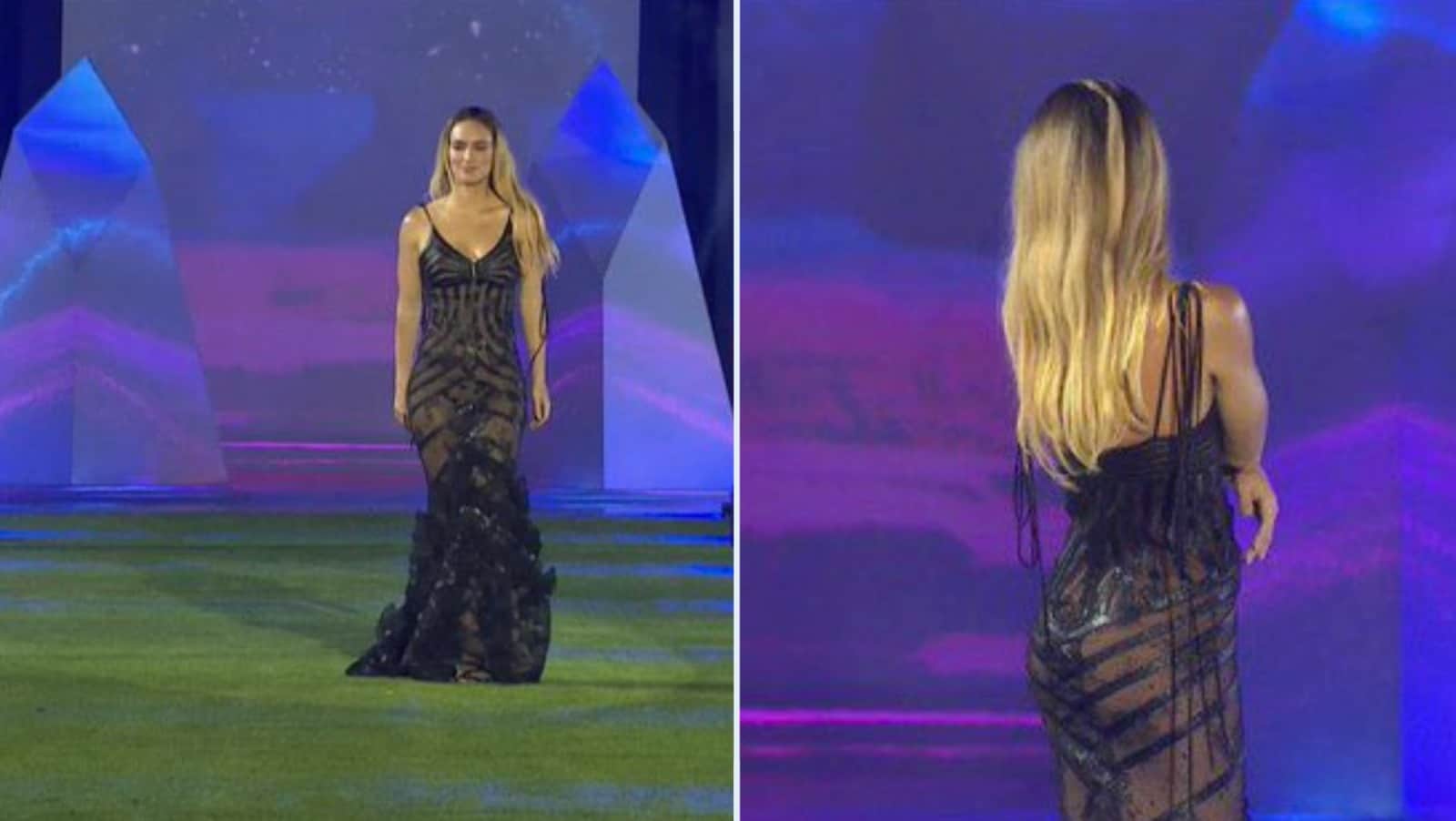 La modelo decidió reutilizar el vestido transparente que usó Cecilia Bolocco hace unas dos décadas atrás