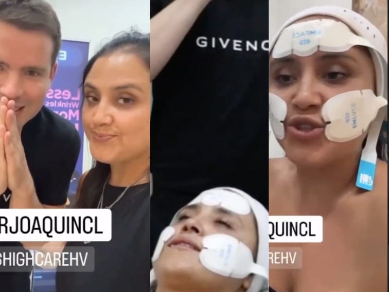 El doctor especialista estética de la Clínica HighCare, Joaquín Navarro, atendió a Leiva y entregó detalles. “La máquina trabaja con dos tecnologías, la primera que está patentada de República Checa que se llama Hifes, que es un sistema de contracción muscular, o sea activa la musculatura facial. Esta máquina trata la frente y la parte de las mejillas para hacer una elevación y aumentar el tono muscular facial y eso permite que haga un lifting”, explicó.
