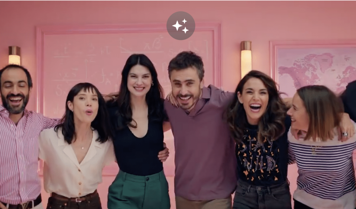En el avance, se observa a un grupo de niños corriendo hacia el pizarrón de un aula, quienes rápidamente se transforman en adultos.