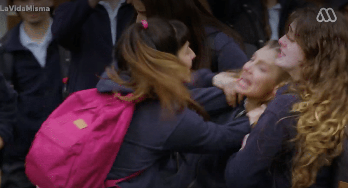 Mientras estaban en los camarines de la escuela, Carol escondió la ropa de Pía mientras esta se encontraba en la ducha. Cuando Pía, solo con una toalla, buscaba desesperadamente su uniforme, Carol decidió grabar la escena y compartirla en las redes sociales, volviéndose rápidamente viral.
