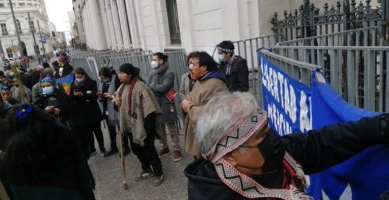Este martes un grupo de manifestantes mapuches se trasladaron hasta la sede de la Convención Constitucional, para emplazar a los convencionales de esa etnia, asegurando que no los representan.