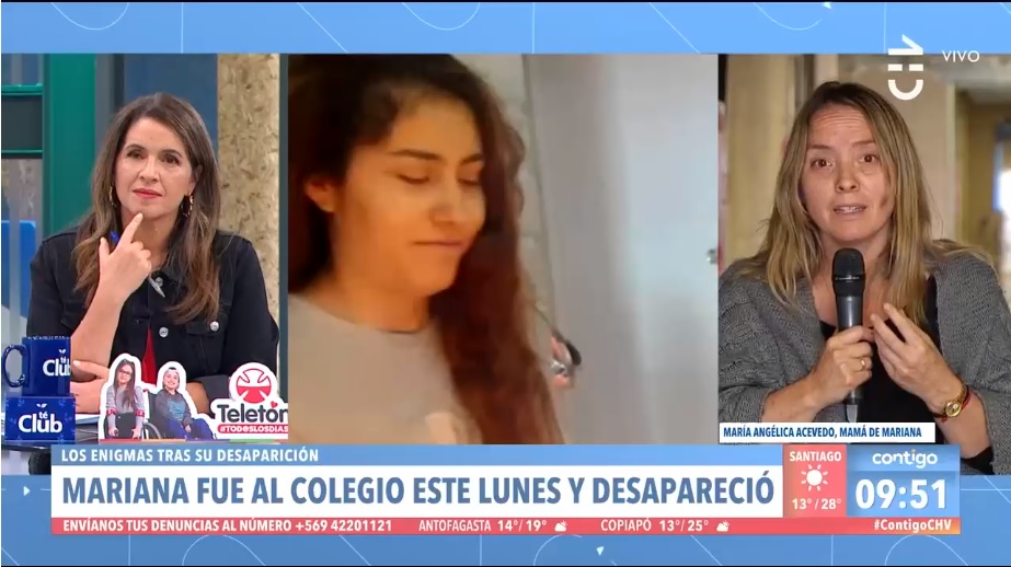 La mañana de este viernes los matinales Mucho Gusto (Mega) y Contigo en la Mañana (CHV) se volcaron a cubrir el caso de Mariana, una joven estudiante que está desaparecida hace ya cuatro días, que fuera vista por última vez en el metro Quilín.