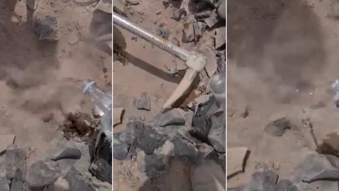 Desde un registro viralizado en redes sociales se aprecia que al menos dos personas estuvieron en contacto y manipularon este objeto, el cual desprendía vapor al momento de ser rociado con agua.