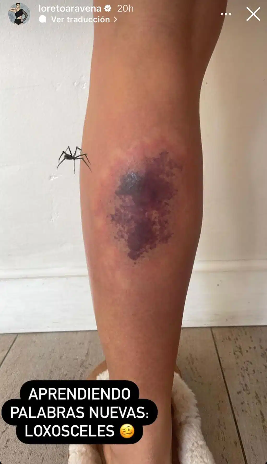 “Aprendiendo palabras nuevas: Loxosceles”, escribió Loreto Aravena sobre el tipo de araña que la atacó. Además, le pudo traer consecuencias peores si no se percataba a tiempo de la situación, se señala en La Cuarta.