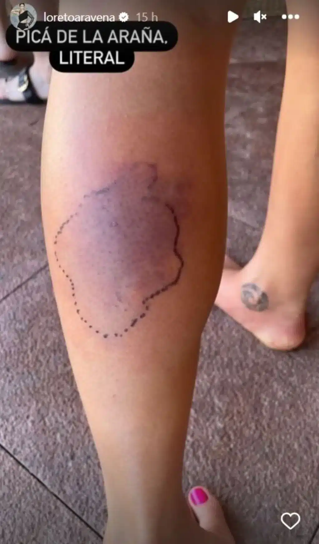 Mediante su cuenta de Instagram, Aravena indicó que fue mordida por una araña y posteriormente subió la impactante herida que le quedó en su pierna producto de la picadura.