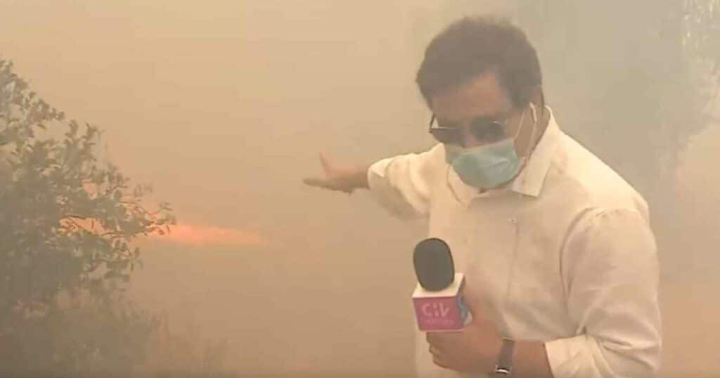El periodista de CHV Noticias, Avelino Martínez, dio cuenta este viernes del avance de las llamas en el comuna de Santo Domingo, en la Región de Valparaíso.