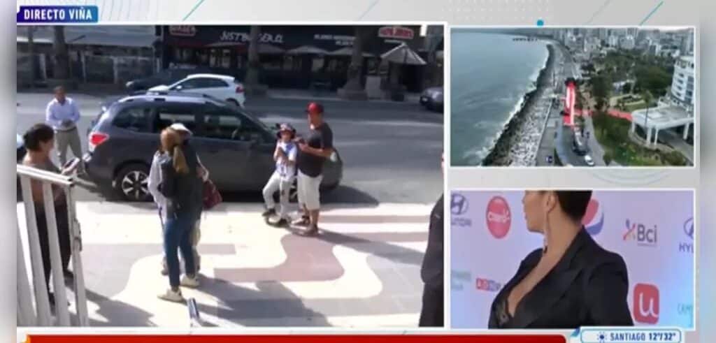 La famosa cantante chilena, Denise Rosenthal, fue captada por las cámaras de televisión cuando se detuvo en su auto cerca del Casino de Viña del Mar. Bajó del vehículo usando gorra y lentes en un intento por no llamar la atención, mientras Karen Doggenweiler, periodista y presentadora de televisión, entrevistaba a transeúntes.