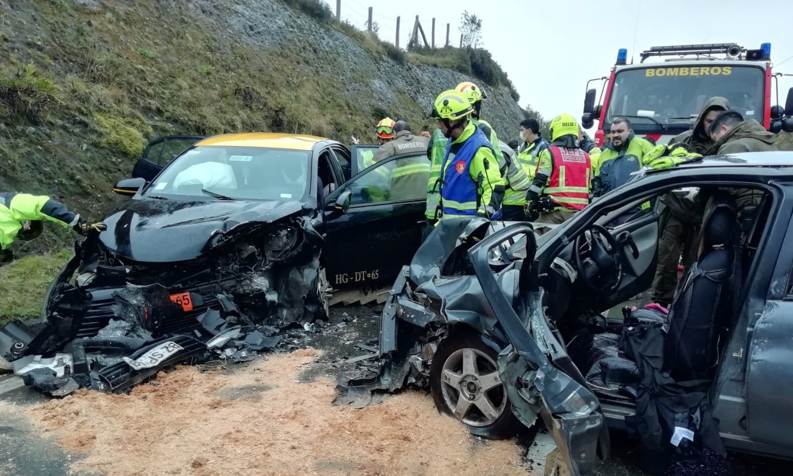 Al sitio del accidente acudieron dos unidades de Bomberos, ambulancias del SAMU y personal de Carabineros.
