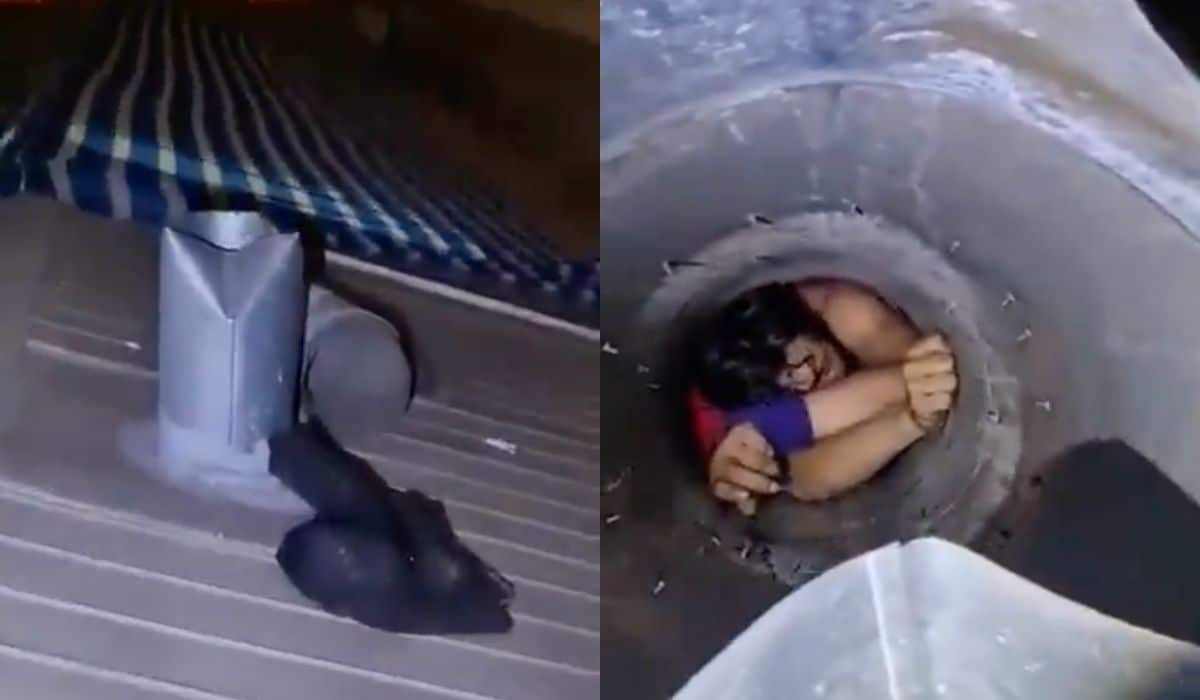 VIDEO | “Estoy pa’ la ca… compañero, ayúdame, tenía frío, papito”: Delincuente se creía el hombre araña y termino atrapado en un ducto