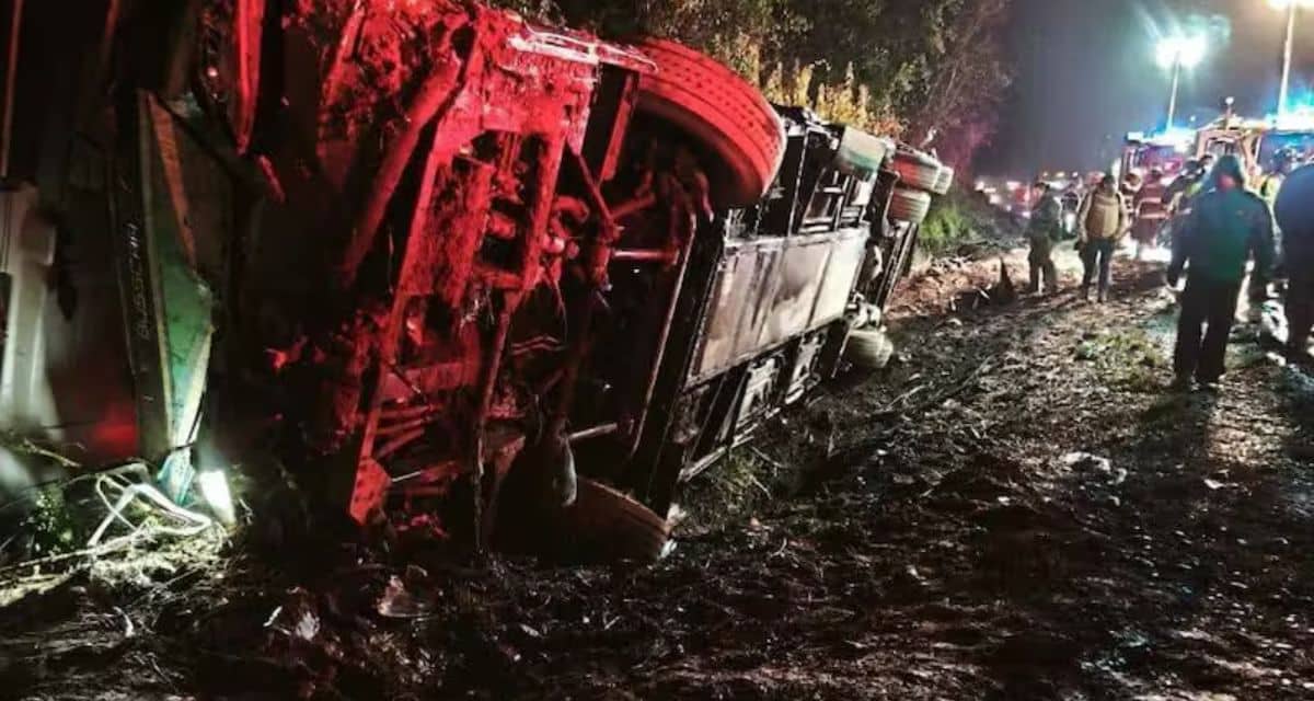 43 lesionados deja accidente de tránsito esta madrugada en la Ruta 5 Sur Km 741 en Loncoche Región de la Araucanía, Bus de Empresa Trasantin que por causas que determinará la Siat volcó a un costado de la Ruta @biobio@chile_accidente @Louisvasquez23 @Pabl0Manzanares pic.twitter.com/J8WTC97XZU— IEC-180 CONTROL STGO (@fdo2000) June 21, 2025