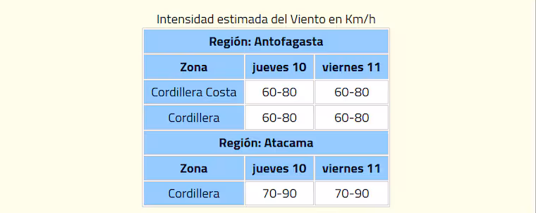 La Dirección Meteorológica de Chile (DMC) emitió una serie de advertencias para distintas zonas del territorio nacional, debido a la llegada de intensas rachas de viento que afectarán tanto al norte como al sur del país. El fenómeno se desarrollará entre el jueves 10 y el viernes 11 de julio, y en algunos sectores podrían registrarse velocidades de hasta 100 km/h.