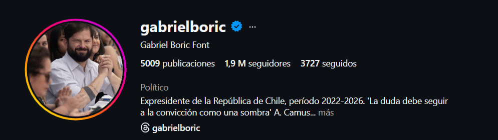 Además, Boric también actualizó la descripción de su cuenta para reflejar su nueva condición.