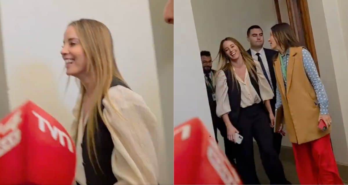 El registro, captado en el Palacio de La Moneda, muestra a la secretaria de Estado siendo abordada por periodistas mientras se desplazaba por el recinto.