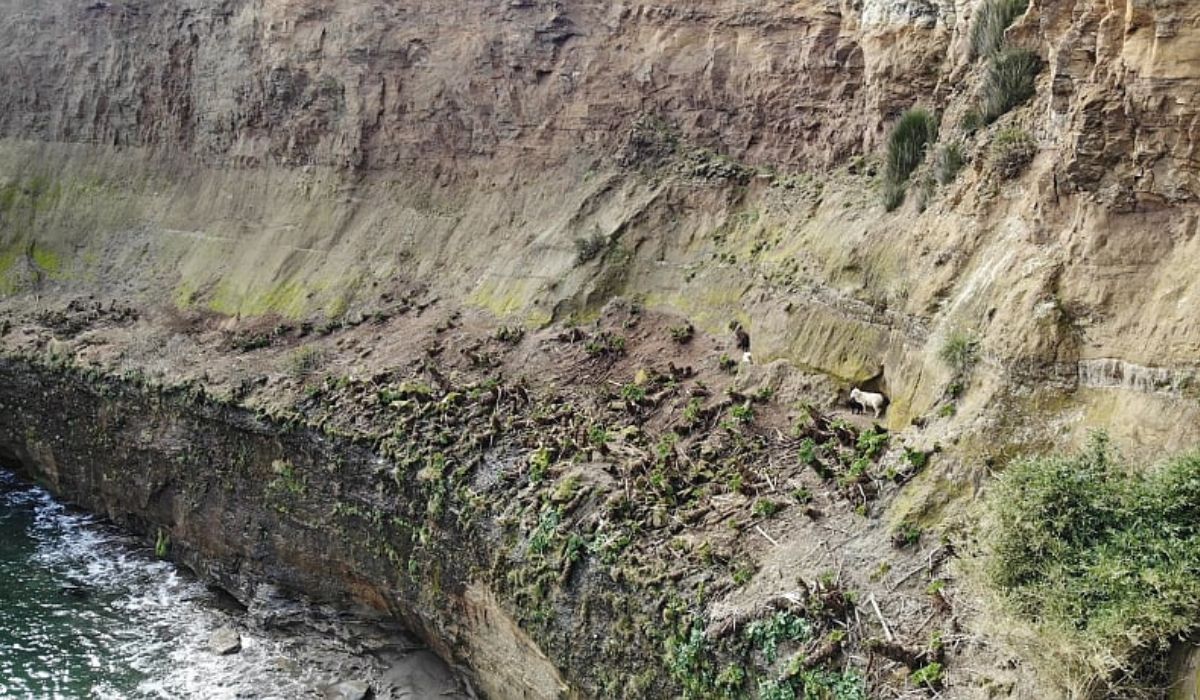 Tres ovinos, intentando escapar de los perros, cayeron por un barranco de al menos 100 metros hasta la playa de Mutrico, en Ancud.