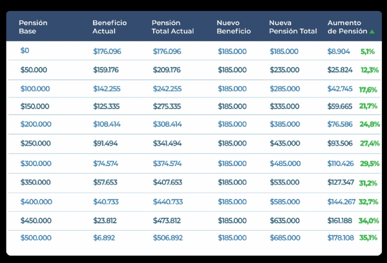 - $176.096 (pensión total actual): $185.000 (nueva pensión total)