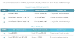 El monto depende de la renta bruta que perciba la beneficiaria, pero a continuación podrás ver una imagen con los detalles de cada tramo.